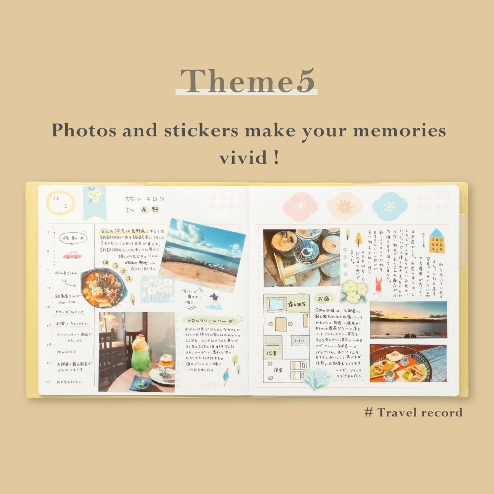 - Wish List, Favourite Log, Monthly events, Travel map (Japan), Travel Map (World),Grid Memo : 36 pages